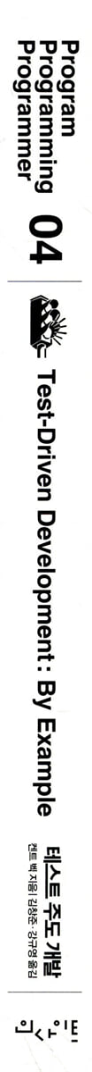 1장 다중 통화를 지원하는 Money 객체 2장 타락한 객체 3장 모두를 위한 평등 4장 프라이버시 5장 솔직히 말하자면 6장 돌아온 ‘모두를 위한 평등’ 7장 사과와 오렌지 8장 객체 만들기 9장 우리가 사는 시간(times) 10장 흥미로운 시간 11장 모든 악의 근원 12장 드디어, 더하기 13장 진짜로 만들기 14장 바꾸기 15장 서로 다른 통화끼리 더하기 16장 드디어, 추상화 17장 Money 회고 2부 XUnit 예시 18장 xUnit으로 가는 첫걸음 19장 테이블 차리기 20장 뒷정리하기 21장 셈하기 22장 실패 처리하기 23장 얼마나 달콤한지 24장 xUnit 회고 3부 테스트 주도 개발의 패턴 25장 테스트 주도 개발 패턴 26장 빨간 막대 패턴 27장 테스팅 패턴 28장 초록 막대 패턴 29장 xUnit 패턴 30장 디자인 패턴 31장 리팩토링 32장 TDD 마스터하기 부록 A 영향도 부록 B 피보나치 마치는 글 (by 마틴 파울러) CDROM부록 실전 TDD (by 김창준, 강석천) |