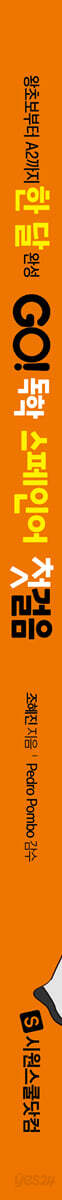 이 책 한 권이면 누구나 스페인어 독학 가능! 『GO! 독학 스페인어 첫걸음』은 발음부터 회화까지 한 달 만에 스페인어 기초 표현을 독학으로 익힐 수 있도록 구성한 교재입니다. 실생활에서 자주 사용하는 생생한 스페인어 표현을 통해 누구나 쉽고 부담 없이 스페인어를 학습할 수 있으며, 말하기 중심의 체계적인 학습 커리큘럼으로 단기간에 스페인어 기초를 마스터할 수 있습니다. 쉽고 체계적으로 독학 학습이 가능한 『GO! 독학 스페인어 첫걸음』만의 핵심 비밀은 바로 - 체계적인 커리큘럼에 부담 없는 학습 분량으로 단시간에 학습 효과 UP! - 스토리텔링으로 쉽게 학습하고 오래 기억하는 스페인어! - 생생한 네이티브 스페인어! 진짜 최신 스페인 현지 정보! - 하나하나 확실히, 꼼꼼하게 내 실력으로! 혼자 해도 충분하다! GO! 독학 스페인어 첫걸음만의 짱짱한 구성! 1. 말문 트GO! 한 권을 관통하는 스토리! 마드리드의 일상생활 이야기로 회화를 마스터합니다. 핵심 어휘는 대화문 하단에서 바로바로 찾고, 대화의 포인트가 되는 꿀팁은 포인트 잡GO!로 짚고 가세요. 2. 핵심 배우GO! 대화문 중 핵심이 되는 표현을 꼼꼼히 짚어보고, 응용 표현까지 자연스럽게 익힙니다. 실수하기 쉬운 부분, 유의사항까지 빠짐없이 제공하니 놓치지 마세요. 3. 문법 다지GO! 꼭 필요한 문법만 제대로 배웁니다. 한눈에 들어오는 도표, 간결하고 이해하기 쉬운 설명, 다양한 예문으로 목표로 하는 내용을 차근차근 내 것으로 만들어보세요. 4. 어휘 늘리GO! 주제별로 기본적으로 알아야 할 필수 어휘와 표현까지 풍성하게 수록했습니다. 삽화와 사진으로 어휘를 좀 더 쉽고, 재미있게 외울 수 있습니다. 5. 실력 높이GO! 듣기, 문법, 작문까지 모든 영역의 실력을 점검할 수 있도록 연습문제를 제공합니다. 스스로 얼마나 완벽하게 이해하고 잘 습득했는지 점검해 보세요. 6. 스페인어권 세계 만나GO! 스페인어권 국가들의 역사, 음식, 전통, 예술, 관광명소, 주요 기념일 등 다양한 문화 요소와 현지 정보도 만나 보세요. 〈특별 부록 알차게 활용하자GO!〉 1. 네이티브 MP3 음원을 들으며 회화와 단어를 정확한 발음으로 따라하고, 연습문제를 풀어 보세요. 2. 유료 동영상 강의로 머리에 쏙쏙, 남들보다 쉽고 확실하게 공부하세요. 3. 별책부록 핸드북으로 언제 어디서나 가볍게, 필수 동사를 마스터하세요. 4. 동사 변화표 쓰기 노트 PDF, 듣기 트레이닝 PDF로 배운 내용을 틈틈이 복습해 보세요. ‘GO! 독학 스페인어 첫걸음’만의 학습 노하우를 공개합니다! know-how 01 스페인 현지 느낌이 물씬! 스페인어권의 다양한 문화를 소개한 생생한 네이티브 스페인어로 회화에 자신감 UP! know-how 02 부담 없는 학습 내용과 분량! 어렵고 지루한 내용은 NO! 혼자서도 문제없는 분량과 재미있는 회화로 집중 학습! know-how 03 다양한 유형 학습으로 스페인어 마스터! 단 한 권으로 듣기, 읽기, 쓰기, 말하기 네 가지 영역 학습 가능! know-how 04 네이티브 발음으로 실력 업그레이드! 회화와 연습문제까지 스페인 네이티브 성우가 직접 녹음한 MP3 파일 제공! know-how 05 필수 동사와 예문으로 기초 공사 탄탄! 스페인어 회화와 시험에서 가장 많이 등장하는 필수 동사로 알차게! ▶ 해당 도서의 무료 학습자료와 유료 동영상 강의는 시원스쿨 스페인어 사이트에서 만나실 수 있습니다. (spain.siwonschool.com) |