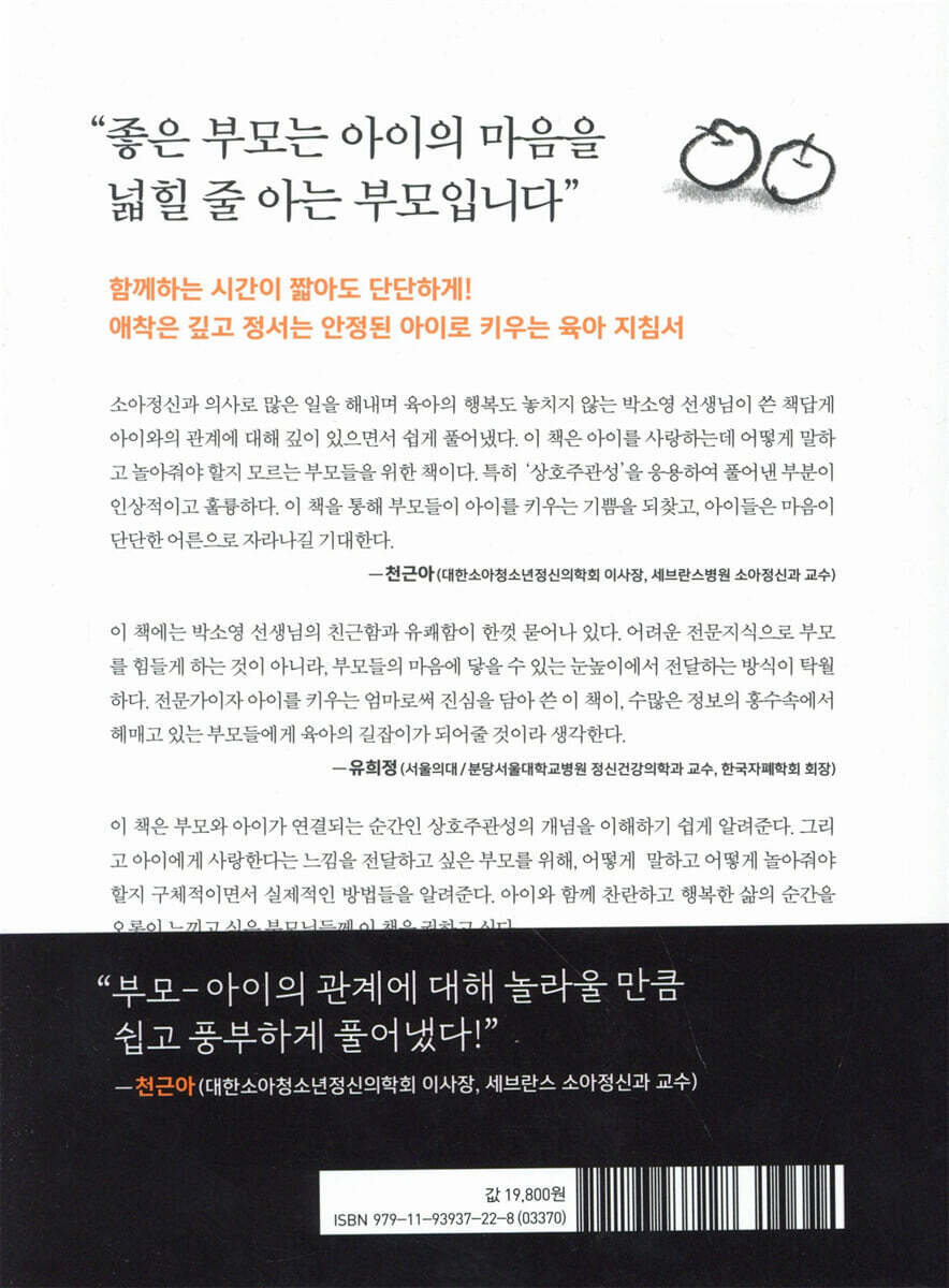 행복도 최하위, 대한민국 아이들의 마음은 가난하다 학교에서 내로라하는 우등생, 부유한 가정에서 자란 아이, 부모의 관심과 애정을 듬뿍 받고 자란 아이…. 겉으론 완벽해 보이는 아이들이지만 이들의 마음은 아프고 병 들었다. 무엇이 문제일까? ‘부모와 아이가 바라보는 방향이 다른 것’에서부터 실타래는 얽히기 시작했다. 부모는 아이를 위해 자는 시간도 줄여가며 바쁘게 움직인다. 오직 아이를 잘 키우기 위해 육아 정보를 검색하고 육아를 열심히 공부한다. 그러나 이런 부모 밑에서 자란 아이들은 오히려 ‘불행’하다고 말한다. 실제로 유니세프에서 조사한 아동 행복 지수에 따르면, 2024년 전체 41개국 가운데 대한민국은 38위에 그쳤다. 아이들의 행복도는 그야말로 최하위권인 것이다. 그렇다면 어떻게 해야 아이를 행복하게 만들어 줄 수 있을까? 어떻게 해야 ‘좋은 부모’가 될 수 있을까? 이에 대한 해답은 바로 ‘아이가 원하는 부모가 되어줄 것’이다. 아이는 부모가 자신을 이해해주고, 공감해주고, 함께해주길 원한다. 다만 ‘적절한 방법’으로 자신의 마음을 알아주고 함께해주길 바란다. 이 책은 바로 그 ‘적절한 방법’에 대한 책이다. "좋은 부모는 아이의 마음을 넓힐 줄 아는 부모입니다" 아이의 정서 교육과 애착 형성을 쌓는 열쇠, 상호주관성 저자는 소아정신과 의사면서 동시에 6살 아들을 키우고 있는 엄마다. 그런 저자에게 잊지 못할 순간이 있었는데, 바로 아이가 6개월 때 서로의 눈을 바라보며 서로의 사랑을 확신한 순간이다. 두 사람이 서로의 감정, 생각 등을 교류하는 이러한 상태를 ‘상호주관성’이라고 부른다. 낯설 수도 있지만, 사실 상호주관성은 우리 모두의 집에서 매일 일어나고 있다. 정신의학, 심리학, 인문학 등 전문가들 사이에선 잘 알려진 개념이지만 아직 일반인들에겐 알려지지 않은 ‘상호주관성’. 저자는 이 책을 통해 ‘상호주관성’을 대중들에게 소개한다. 상호주관성을 높이면 정서 교육과 애착 형성이 저절로 이뤄지고 아이의 내면이 단단해진다. 아이뿐 아니라 부모도 달라진다. 아이와 부모가 서로의 마음과 생각을 나누는 순간 부모는 육아 지옥에서 벗어나 육아의 참맛, 육아의 참 행복을 느낄 수 있게 된다. 실제로 저자도 아이와의 상호주관적 경험을 육아의 원동력으로 삼는다고 고백했다. “좋은 부모는 기술이 아니라 태도로 결정된다” 어떻게 놀아줄까? 어떻게 말해줄까? 부모는 약간의 노력만으로 상호주관성을 드라마틱하게 높일 수 있다. 특히 일상에서 가장 자주 발생하는 놀이와 대화 시간에 자연스럽게 상호주관성을 쌓을 수 있다. 놀이는 아이가 자신의 세계로 부모를 초대한 것이다. 아이와 함께 놀이를 할 때는 아이가 자신의 상상과 욕구를 드러낼 수 있도록 아이의 흐름을 따라가야 한다. 또한 아이가 하는 말과 행동을 그대로 따라하거나 아이의 행동을 묘사해줌으로써 아이가 놀이에 더욱 몰입하게 할 수 있다. 대화를 할 땐 문제를 해결하려고 하지 말자. 대부분의 부모가 아이의 감정을 들어주기보단 지금의 상태를 해결하려고만 한다. 가령 아이가 차 안에 오래 앉아 있어서 짜증날 때 부모는 “네가 운다고 빨리 갈 수 있는 건 아니야” 혹은 “운전할 때 울면 안 된다고 했지!”라고 반응하기 쉽다. 하지만 아이가 어떤 마음인지 궁금해 하며, 그 마음을 수용하고 공감해주어야 한다. 가령 “채원이 많이 답답해? 많이 지루했구나. 답답하겠다”라고 말해보자. 아이의 태도도 달라질 것이다. 이런 정서 중심의 놀이와 대화가 매일 쌓일 때 가랑비에 옷젖 듯 아이는 부모를 더욱 신뢰하게 되며, 자신의 감정을 받아들이고 조절하는 법을 배운다. 책의 마지막에는 자신의 육아를 점검하고, 상호주관성을 높일 수 있는 워크시트가 포함되어 있다. 아이와 함께하는 시간이 짧거나 아이와의 관계를 더욱 단단하게 다지고 싶은 부모라면 워크시트로 커다란 도움을 받을 수 있을 것이다. |