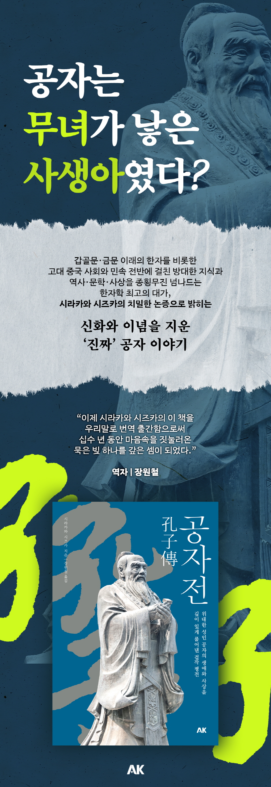 깊이 있게 풀어낸 걸작 평전 이상을 좇아 좌절과 풍랑 속을 헤매던 공자. 중국의 위대한 철인이 남긴 언행은 『논어』에 담겨 오늘날에도 전 세계에서 살아 숨 쉬고 있다. 중국 역사와 사회에 대한 문명적 논의는 필연적으로 공자와 유교에 대한 논의와 평가를 수반한다. 공자와 유교 사상이 탄생한 후 2,500여 년이 지난 오늘날에도 중국에서 여전히 현실을 움직이는 현재적 사상으로 살아 작용한다는 것은 그 자체로 하나의 경이로움이라 할 수 있다. 공자는 어떻게 자기 시대를 살았을까. 어떻게 시대의 힘과 싸웠던 것일까. 공자는 현실에서 패배했으면서 어떻게 인류의 영원한 스승이 될 수 있었을까. 저자 시라카와 시즈카는 고대 중국 사회와 민속 전반에 걸친 방대한 지식과 역사, 문학, 사상을 종횡무진 넘나들며, 공자가 성인으로 추앙받기까지 그의 삶의 방식과 발자취, 사상의 흐름을 치밀한 논증으로 흥미롭게 풀어내고 있다. 아울러 공자를 중심으로 중국 고대 문화의 전통이 어떻게 형성되어 이어져 왔는지 입체적으로 살펴본다. 공자에 대한 일률적인 인식을 벗어나, 저자는 기존과는 다른 공자상을 제시하며, 공자 사상의 원질에 대해 다시 생각해볼 기회를 제공한다. 중국을 비롯한 동아시아 문명에서 공자의 일생과 그 사상적 궤적이 어떠한 영향을 미쳤는지 명확하게 이해할 수 있을 것이다. |