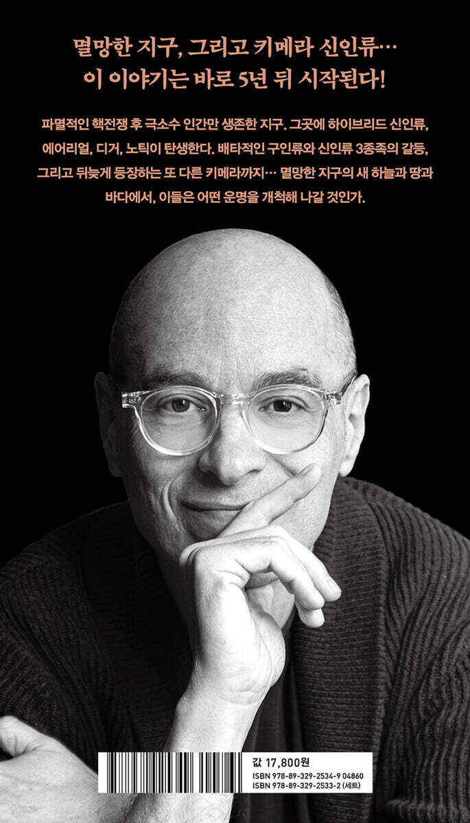 --- pp.21-22 「솔직해집시다. 우리는 현명하지 않습니다. 그렇기는커녕 어리석고, 분별없고, 비이성적이고, 무엇보다도 이 지구상에 우리와 함께 살아가는 다른 종들을 한없이 경시합니다. 너무나 오만한 나머지 우리가 자연을 지배할 수 있다고 믿습니다. 그래서 우리는 모든 것을 획일화하려 듭니다. 농업 기업들은 가장 생장이 빠르고 강인한 단 한 종류의 밀을 개발하려 연구했습니다. 마찬가지로 우리는 우유 생산량이 가장 많은 한 종류의 암소만을 대량 사육했죠. 양털이 제일 많이 나오는 양 한 종. 지방을 제일 많이 축적하는 돼지 한 종. 넓적다리가 가장 두툼하고 깃털은 최대한 적은 닭 한 종. 이들 동식물종은 최대한의 수익을 내기 위해 더 많이, 더 빨리 생산할 목적으로 선택되어 복제되었습니다. 하지만 질병이 발생한다면, 밀의 백분병, 광우병, 양의 진전병, 아프리카 돼지 열병, 조류 독감 같은 병이 돈다면 어떻게 될까요? 우리가 만든 단일 종들은 스스로를 지키지 못하고 단번에 떼죽음을 맞을 겁니다.」 --- pp.26-27 「미사일은 방공 시스템 〈아이언 돔〉에 차단당했어요. 공중에서 폭발했죠. 하지만 이스라엘은 즉각 반격에 나서, 이번에는 핵미사일로 추정되는 이란의 미사일 발사 시설들에 미사일을 날려, 적지 않은 피해를 입혔죠. 유엔은 거의 만장일치로 이스라엘을 규탄했어요. 하지만 판도라의 상자는 이미 열린 셈이었죠……. 이란의 든든한 우군인 북한이 남한을 공격했는데, 남한 역시 얼마 전 이스라엘에서 구입한 〈아이언 돔〉 시스템으로 막을 수 있었어요. 그리고 이전 사태와 마찬가지로 남한도 북한의 미사일 발사 시설이나 미사일 제조 시설이 있다고 추정되는 장소들을 공격했죠.」 --- p.119 「자, 도착했군.」 피에르가 손으로 계기판에서 피어오르는 연기를 쫓으며 알린다. 그들은 기침을 한다. 「방사능 수치는?」 기장이 묻는다. 시몽은 수치가 표시된 계수기 화면을 살펴본다. 「120밀리시버트.」 「그게 어느 정도지……?」 피에르가 묻는다. 「체르노빌 원자력 발전소가 폭발했을 때 주변 방사능 수준이지. 치명적이야.」 --- p.154 대재난이 닥쳤을 때 살아남도록 변종 신인류를 탄생시킬 계획이었던 나였지만, 모든 일이 이렇게 빨리, 이 정도까지, 이렇게 극단적인 방식으로 일어날 줄은 상상도 못 했어. 어머니 자연은 우리의 어리석음을 보고 인내심을 잃었던 게 분명해. 자연은 인간에게 자기 파괴 성향을 불어넣었고 인간은 무시무시하도록 유능하게 제 본성을 드러냈어. --- p.161 「이제 혼종 3형제가 완성됐군. 공중의 왕 헤르메스. 지하의 왕 하데스. 바다의 왕 포세이돈.」 시몽이 정리한다. 프랑키는 공식 사진을 찍자고 제안한다. 본인이 종종 부르는 대로 〈우주에서 온 과학자〉 커플이, 세 혼종을 흰색, 검은색, 푸른색인 각자의 피부색을 돋보이게 하는 수건에 감싸품에 안은 사진이다. 「이제 뉴 이비사에 상황을 알릴 때에요.」 마르세유 억양의 마을 지도자는 선언한다. 「그 일은 내가 맡죠.」 시몽과 알리스는 걱정스레 서로를 바라본다. 알리스는 기운이 빠진 듯 주저앉는다. 성공했다는 기쁨과 사람들이 신생아들을 거부할지 모른다는 두려움으로 복잡한 심경이다. --- p.191 |