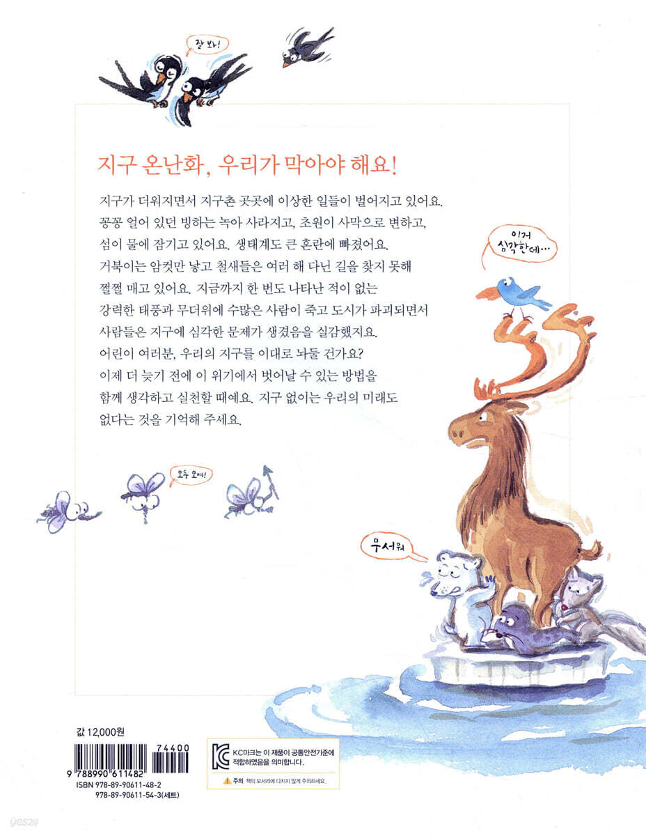 지구촌 기후 뉴우스 시간입니다 북극곰이 물에 빠졌어요/ 땅이 무너지고 있어요 / 남극의 빙하가 녹고 있어요 / 섬나라들이 사라지고 있어요 / 만년설이 녹고 있어요 / 바닷물의 온도가 올라가요 / 산호가 사라지고 있어요 / 바다거북이 암컷만 낳아요 / 우리나라 제비가 강남으로 가기 싫대요 / 열대성 질병이 번지고 있어요 기후는 왜 변하는 걸까요? 기후란 무엇일까요? / 금성과 화성의 기후는 지구와 달라요 / 대기가 지구의 체온을 조절해요 / 대륙이 움직여서 기후가 달라져요 / 운석이 떨어지고 화산이 폭발하면 기후가 변해요 / 지구의 기우뚱 운동으로 달라지는 기후 / 바닷물의 흐름도 기후를 변화시켜요 / 바람이 기후를 변화시켜요 우리가 지구를 구해요 유럽과 미국이 폭염에 시달려요 / 우리나라 봄과 가을이 사라지고 있어요 / 이산화탄소가 점점 많이 쌓이고 있어요 / 열대우림이 파괴되고 있어요 / 미지근한 물속 개구리의 운명은? / 오존층의 뚫린 구멍을 막아라! / 온실기체를 줄이는 국제 협약 / 나의 작은 실천이 지구 온난화를 막을 수 있어요 / 바람과 태양의 힘을 이용해요 / 일석이조 에너지 바이오 연료 / 지구는 우리가 구해요 자연과 함께 나누며 사는 기쁨을 찾아요 |