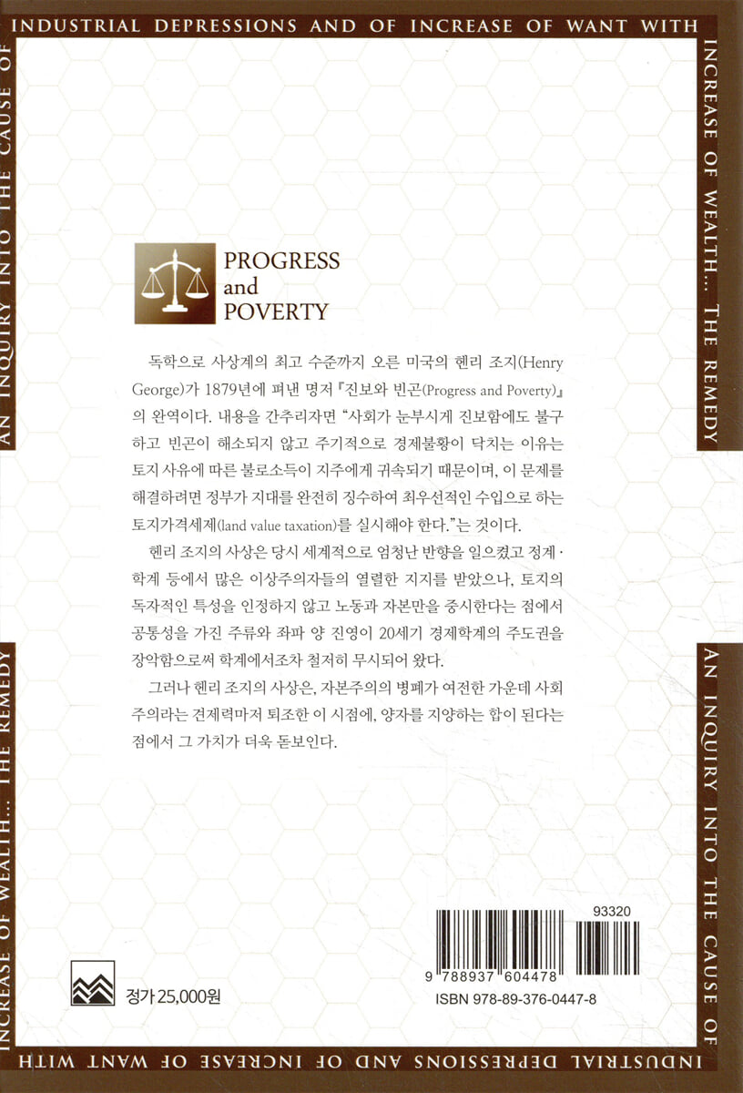 이 책은 미국의 사회사상가 헨리 조지(Henry George, 1839~1897)가 1879년에 처음 펴낸 진보와 빈곤(Progress and Poverty)의 완역으로 역자는 1989년에 축약본을 번역 출판하였다. 1997년 1월 초판 발행 후 초판 발행 후 번역이 미비하거나 어색한 부분이 있었고, 20년 가까운 시간 동안 독자층도 젊어져서 문체에도 얼마간 변화를 주는 것이 필요하다고 생각하여 개역판을 발행하였다.