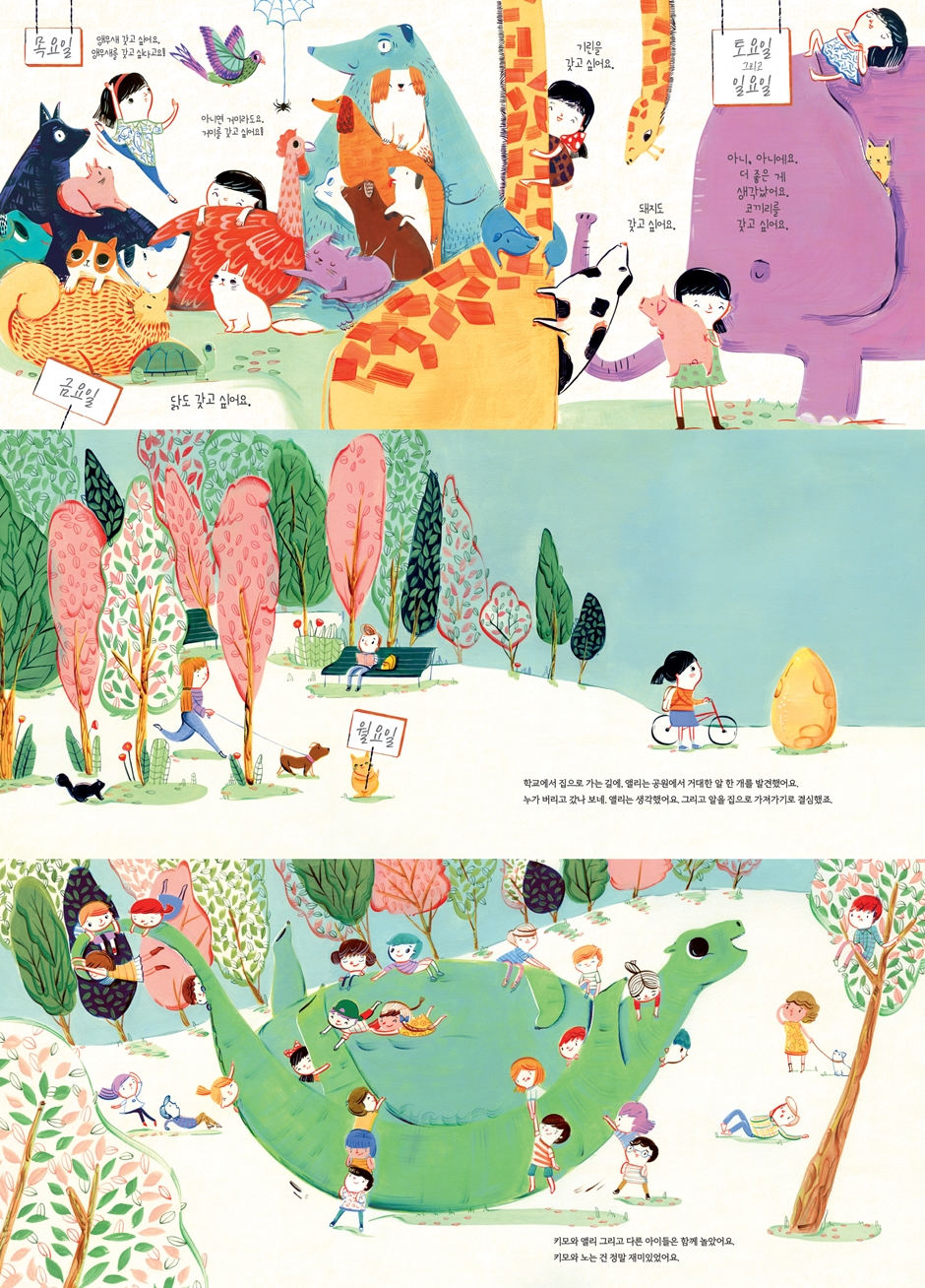 강아지를 갖고 싶다고요! 고양이 갖고 싶어요. 고양이를 갖고 싶다고요! 아니, 아니에요. 더 좋은 게 생각났어요 코끼리를 갖고 싶어요. 집에서 동물을 키운다고? 말도 안 돼!! 공룡 갖고 싶어요. 공룡을 갖고 싶다고요! “강아지나 고양이, 거북이 아니면 앵무새를 입양하면 어떨까?” “아니면 닭이나 돼지, 기린 혹은 코끼리는 어때?” --- 본문 중에서 |