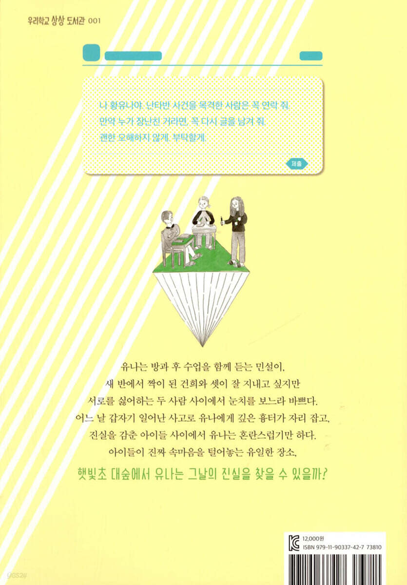 유나는 방과 후 수업으로 난타를 함께 배우는 민설이, 새 반에서 짝이 된 건희와 셋이 잘 지내고 싶지만 서로를 싫어하는 두 사람 사이에서 눈치를 보느라 바쁘다. 세 아이는 SNS 익명 계정인 ‘햇빛초 대숲’에 솔직한 속마음을 털어놓으며 위안을 받곤 한다. 어느 날, 난타반에서 일어난 뜻밖의 사고로 유나의 이마에 커다란 흉터가 생긴다. 햇빛초 대숲에는 사고의 진실을 알고 있다는 글이 올라오고, 진실을 감춘 아이들 사이에서 유나는 혼란스럽기만 하다. 기필코 진실을 파헤치려는 건희와 진실을 외면하고 숨어 버리려는 민설이, 자신을 둘러싼 어긋난 관심과 소문에 몸서리치던 유나는 소용돌이 속에서 벗어나기 위해 각자의 방식으로 답을 찾아 가기 시작한다.
