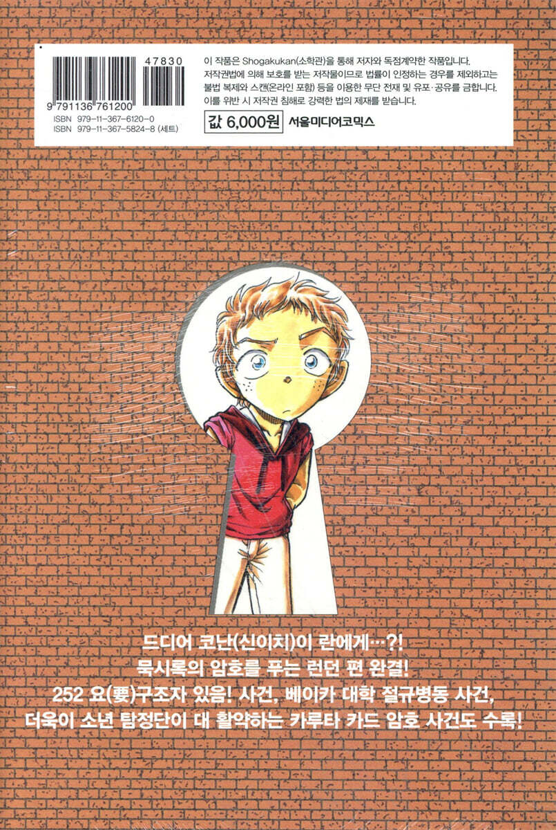 유명 고등학생 탐정이 놀이공원에 갔다가 수상한 거래를 하던 조직에게 붙잡혀 그 조직에서 개발한 약을 먹은 후 초등학생으로 줄어들었다는, 독특한 이야기로 시작하는 『명탐정 코난』은 다양한 사건과 그 속에 숨은 절묘한 트릭 위에, 초등학생이 되었어도 자신을 작게 만든 검은조직의 행방을 뒤쫓는 코난과 그 주변인들의 이야기가 펼쳐져 있어, 오랜 시간동안 긴장감을 잃지 않으며 많은 사랑을 받고 있다.