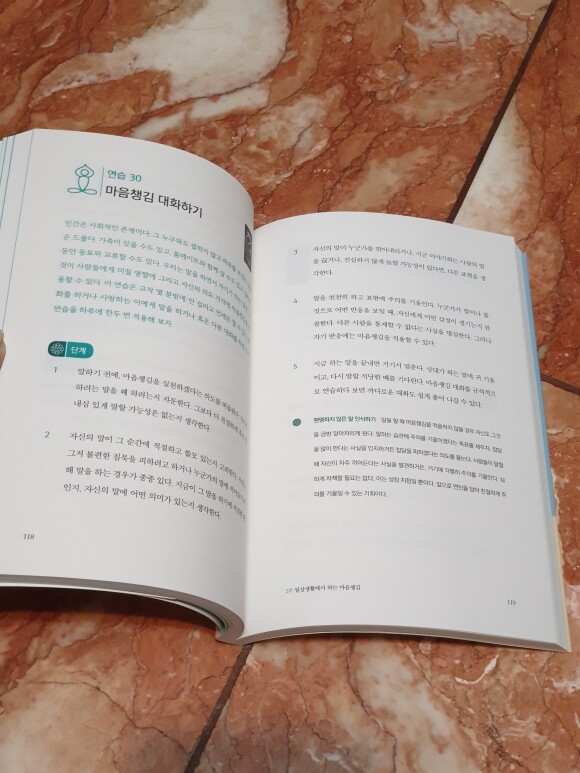 구성 면에서 가장 마음에 들었던 건 3부로 나누어 다양한 상황에 따라 구체적으로 명상하는 방법이 명시되어 있어 첫번째로 내 마음 상태를 한번 들여다보게 되고, 두번째로 깊이 있게 생각의 흐름을 따라갈 수 있다는 것입니다 그냥 눈감고 10분동안 생각에 잠길때에는 생각이 부정적으로 더 깊어지는 경우도 많았는데 책에서 제시하는 방법대로 하나둘 따라하다보니 부정적, 긍정적 생각을 나누고 인정하고 받아들이며 그 사이 균형을 잡는 연습이 되는 것 같습니다 명상하면서도 고려해야할 부분이 많다는걸 새삼 느끼고 새롭게 공부하면서 마음의 다양한 면을 발견하고 있습니다