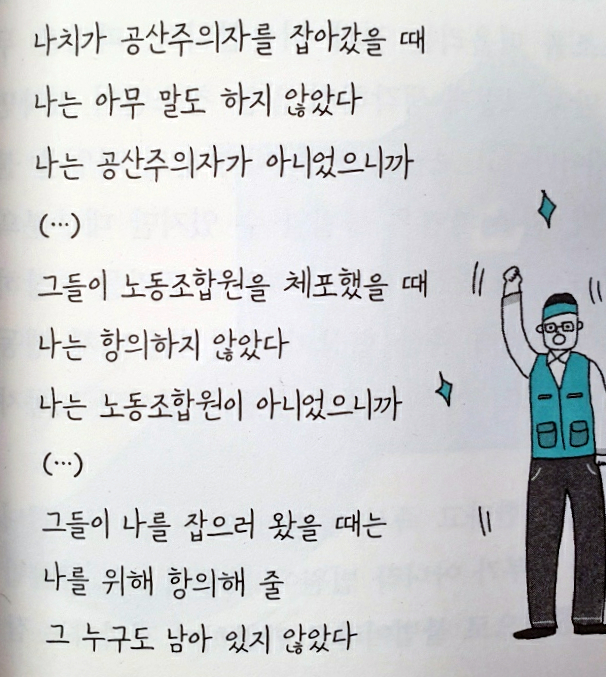 신학자 마르틴 니묄러의 시라고 한다. 내가 노동에 대해 관심을 가지지 않으면 아무도 나를 위해 나서 줄 사람 없고 나 또한 내 이웃의 노동에 같이 연대하지 않으면 결국 그 피해는 언젠가 나에게도 닥칠 시련이 된다. 다음으로 책에서 구체적으로 소개하는 법으로 정해진 나의 노동 권리에는 어떤 것이 있을까?