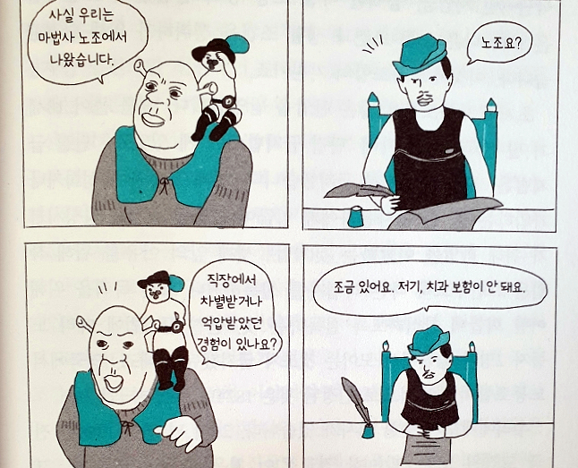 학교 말고 따로 노동에 관한 공부를 해야 하는 현실이 너무 답답하고 짜증 나고 슬프다. 유럽 선진국들이 초등학생부터 노동 권리에 대해 가르치는 이유가 무엇일까? 어쩌면 위의 내용처럼 자본은 약자에게 얼마나 잔혹할 수 있는지 역사적으로 너무나도 잘 알고 있기 때문인지 모른다. "어쩌면 백설 공주에 나오는 일곱 난쟁이가 탄광에서 일하는 어린이를 빗댄 것은 아닐까" (위 책 p66) 이야기에도 흔적이 남을 만큼 자본은 잔인하다. 우리가 지금 누리고 있는 주 5일 40시간 근무(현실적으로 우리나라에서 얼마나 지켜지고 있는지 알 수 없지만) 또한 그냥 저절로 이루어진 것이 아니다.