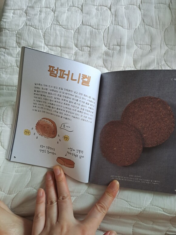 빵에 관심이 많아서 더 재미있게 읽었습니다. 일러스트와 사진이 잘 나와있네요. 빵 종류도 많고 설명도 자세히 나와있어서 지루하지 않고 끝까지 볼 수 있었어요. 책의 크기는 작아서 실물보고 놀랐지만 틈틈히 볼 수 있게 휴대하기 좋았습니다. 표지도 귀엽네요. |