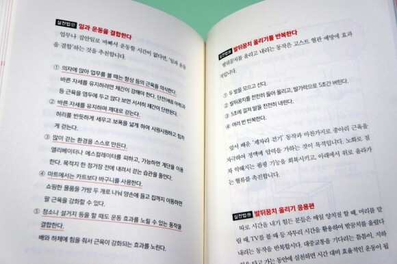 처음부터 찬찬히 읽어가는 것도 좋겠지만 나같이 성질 급한 사람을 위해서 고스트 혈관을 개선하고 빨리 건강해지고 싶은 사람은 5장부터 보라고 친절하게 언급되어 있으니 5장부터 바로 건너뛰어 보기로 한다. 5장에서는 고스트 혈관을 만들지 않는 33가지 실천법을 설명해준다. 균형 잡힌 식사를 하고 잠을 충분히 자라는 지극히 당연한 실천법부터 쉽게 따라할 수 있는 조절법과 운동법 그리고 마사지까지 다양한 분야에 걸쳐서 쉬우면서도 빠르고 그러면서도 즉시 효과를 볼 수 있는 실천법들이 설명되어 있어서 읽으면서 자신감이 붙기 시작한다. 이 정도라면 나도 따라할 수있을 거라고 말이다.