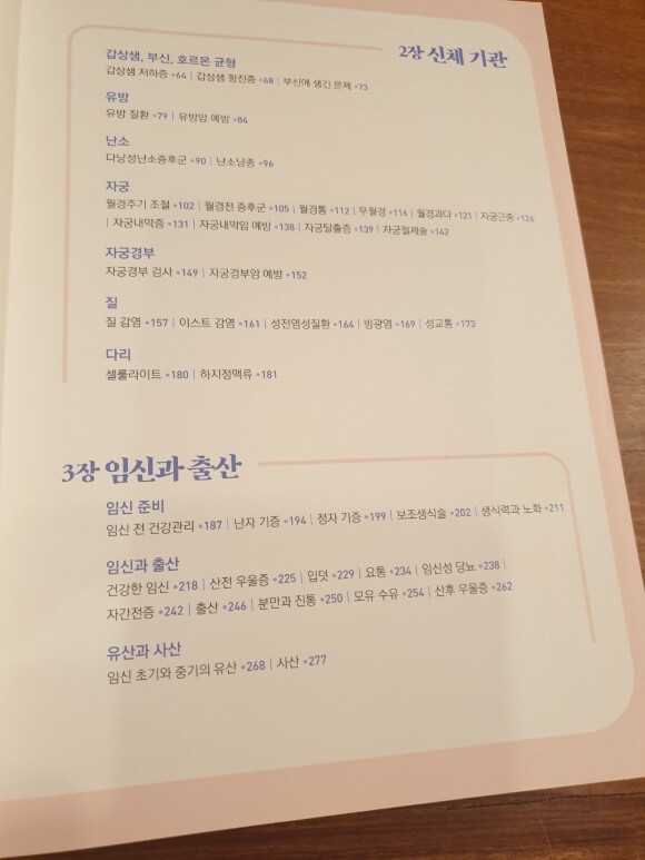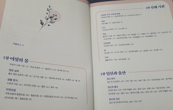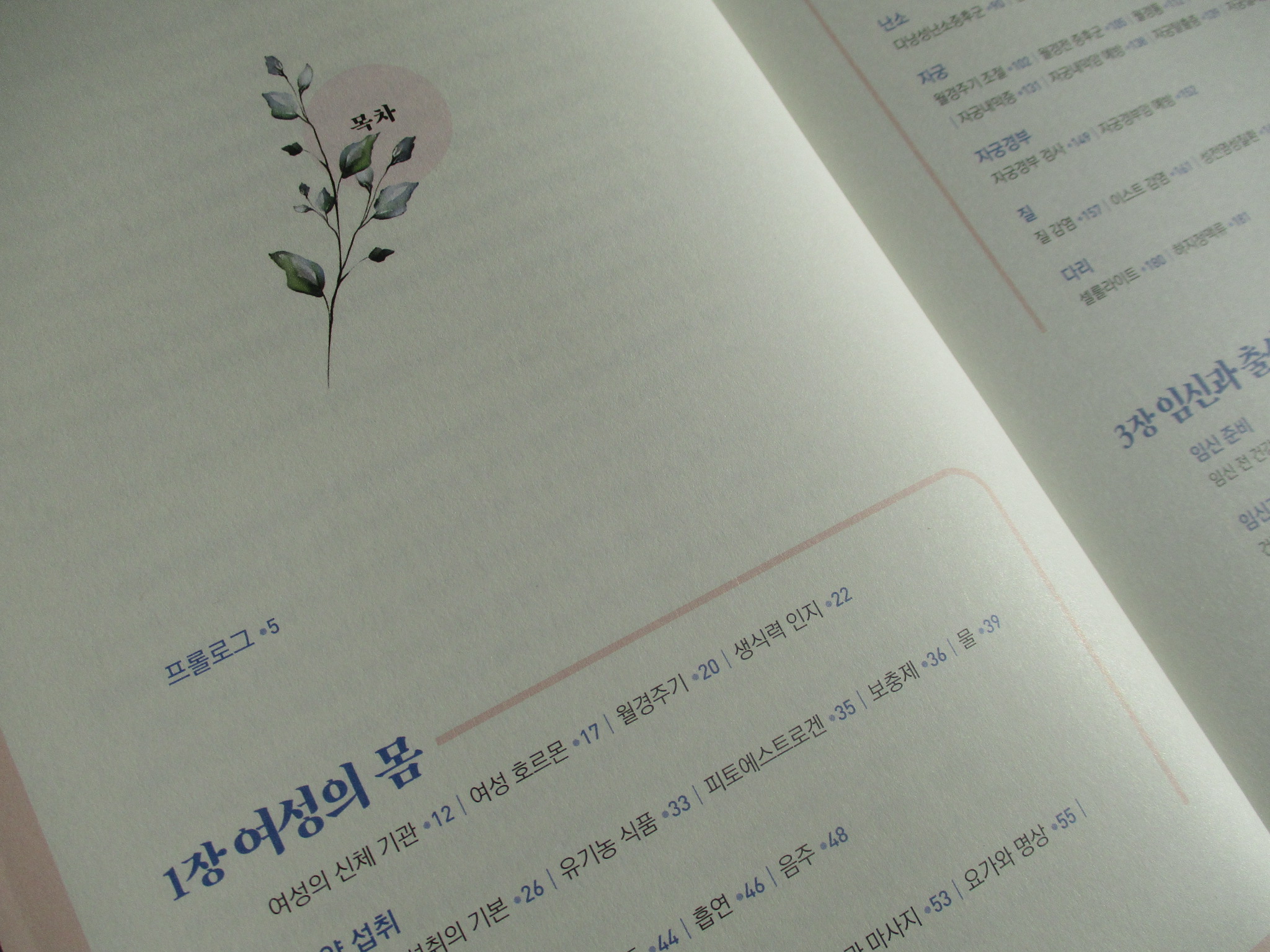 책을 받고 열었을때 책의 두께와 깨알같은 글씨때문에...놀랬어요 바이블 괜히 바이블이 아니였어요~ 하긴 여성의 몸은 예민하고 그만큼 작가님은 많은 내용을 넣고 싶었던것 같은 마음이 들었어요 순서를 봅니다~ 여성의몸, 신체기관, 임신과출산, 완경기극복, 건강하게 사는법