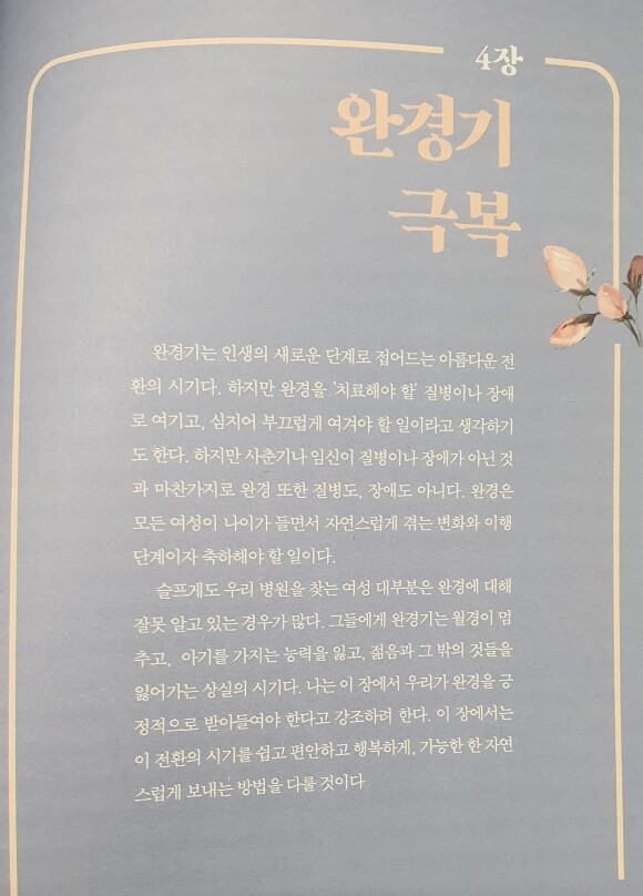 완경과 완경 후기로 나뉘어진다는 것도 이 책을 통해 처음 알게 되었는데 정작 그 과정을 거치고 있는 엄마도 곁에서 지켜보는 저도 몰랐던 부분이라 큰 도움을 받았답니다.