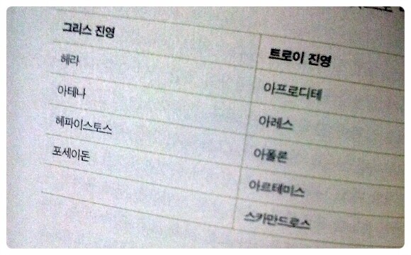 +덧) 올림포스 신들의 수많은 이름이 쏟아진다. 전쟁의 여신, 승리의 여신, 공포와 절망의 신 등. 그냥 들으면 무슨 암기 시험이라도 치는 듯한 기분이었을텐데....... 정말 놀라운 것이 늘 전쟁을 일으키는 것은 불화의 신인데 왜 아테나를 전쟁의 여신으로 부르고 그를 전쟁의 신이라고 부르지 않는지와 같은 아주 세세하지만 중요한 명명의 의미가 자연스레 이야기 속에 묻어나 습득된다! 특히 헤파이스토스가 절름발이인 이유를 설명하는 대목에서는 '유레카'를 외쳤다! 작가가 그리스 고전에 대해 얼마나 방대한 지식을 가지고 있는지, 그리고 그것을 얼마나 쉽게 풀어 쓰고 있는 지는 정말 읽어봐야 알 수 있다!!