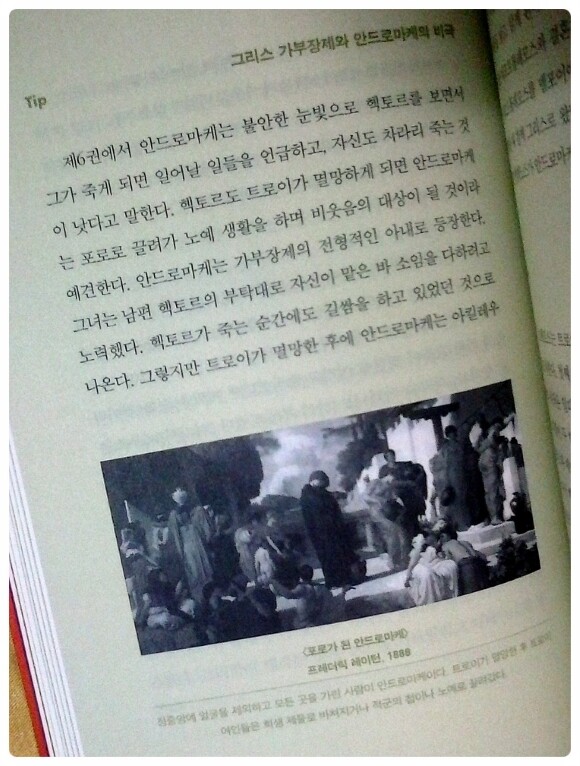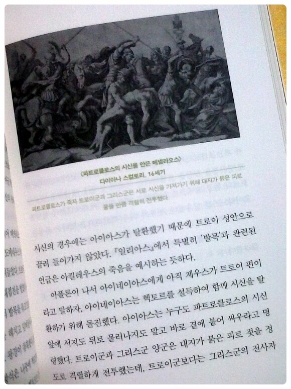 이 책은 일리아스의 해설본 같다. 집에 있는 일리아스 책을 읽으며 뭔가 잘 이해가 되지 않았다면 이 책을 읽어보라 권해주고 싶다. 그리스 문학에서 많이 사용되는 표현들과 그리스 신들이 상징하는 의미와 일리아스에서 다뤄지는 이야기들이 어떤 의미인지를 알려주기 때문이다. 처음에 책을 받고 일리아스 이야기를 읽는 건 줄 알았다. 하지만 이 책엔 이야기와 더불어 그 상황과 표현들에 대한 숨겨진 의미와 우리가 모르고 지나쳤거나 잘 알려지지 않은 이야기들이 담겨있다. 그래서 일리아스 완역판을 읽은 사람들에게도 유용한 책이라고 생각한다. 내가 오래전 읽었지만 거의 이해하지 못했던 일리아스의 그 방대한 의미를 이 책을 통해서 알아가는 재미가 있었다. 중간중간 삽입된 명화들이 흑백이라 좀 아쉬웠지만 일리아스의 상황에 맞는 그림들이 담겨 있어 좋았고 문단 사이에 일리아스의 표현이나 상황이나 개념들을 이해하는 데 도움이 되는 Tip이 들어 있어서 모호한 부분들을 보충할 수 있어서 좋다.