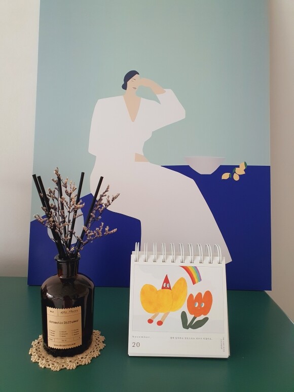 너무 기다렸던 오리여인 만년 일력이에요. 매일 다른 그림의 366장에는 어떤 내용이 담겼을까하며 기다렸어요. 한장한장 넘겨보는데 귀엽고 편안한 그림들이 너무 좋요. 특히 내 생일에는 어떤 그림일까 찾아보는 재미가 있네요. 그리고 매일 한장한장 넘겨볼 하루가 기대됩니다. 집안 이곳 저곳에서 이쁘게 찍어본 사진들을 한컷 한컷 추가합니다. 도움 되셨으면 좋겠어요