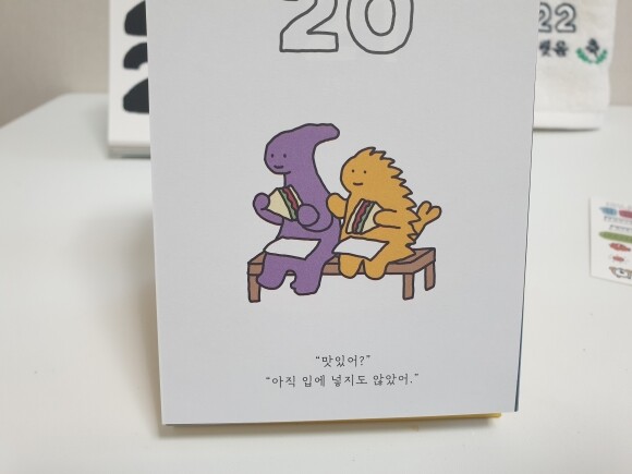 조구만일력 나오고 한참 기다렸는데 드뎌 받았어용 생각보다 더 예쁘고 색감도 종이질도 좋아요 같이받은 수건도 진짜 귀엽네요ㅎ 상자도 예뻐서 선물하기에 좋을것 같아요~♡ 상자 열고 그자리에서 모두 읽었는데 기분이 행복해지는 그림들입니다♡♡♡ 정말 예쁜 그림과 빵 터지는 재밌는 글들^^ 너무너무 마음에 들어요♡ 하루하루를 즐겁게 시작할 수있는 예쁜 일력입니다♡♡♡