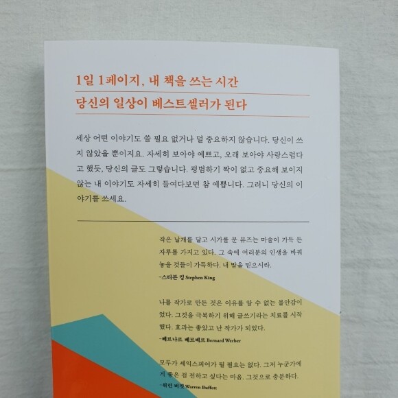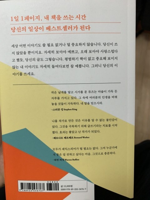이 책의 추천사는 아니겠지만 표지 뒷면에 있는 유명인들의 '글쓰기'에 대한 말이 마음에 남는다. "모두가 셰익스피어가 될 필요는 없다. 그저 누군가에게 좋은 걸 전하고 싶다는 마음. 그것으로 충분하다." - 워런 버핏 |