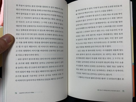 저자가 제안하는 ‘매일 저널 쓰기’ 부분을 읽으며 나의 SNS 글들이 좀더 견고했으면 하는 바람을 가져본다. 또 매일매일 글쓰기의 힘을 믿고 가속도를 붙여나갔으면 좋겠다는 생각도 해본다.