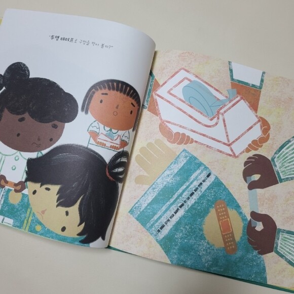 이 책을 읽고나서 며칠뒤 아이의 유치원친구가 그림을 그리다가 실수로 아이의 새옷에 길게 싸인펜을 칠했거든요. 아이는 집에와서 대성통곡하고 저는 열심히 괜찮다며 위로 해줬답니다. 다행히 수성이었는지 세탁 후 감쪽 같이 사라졌더군요.