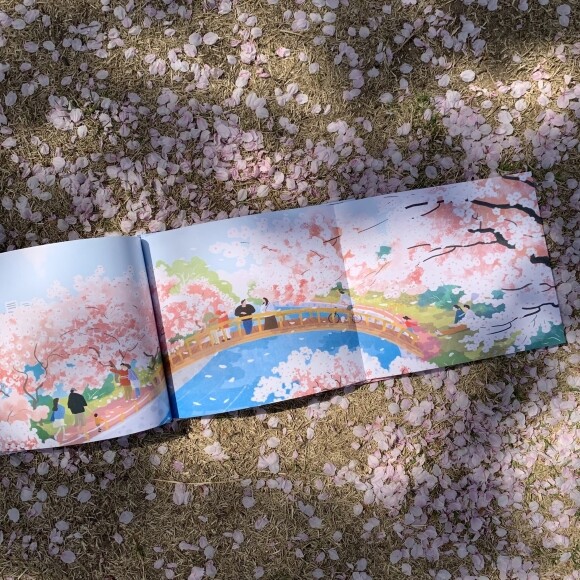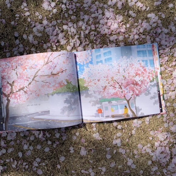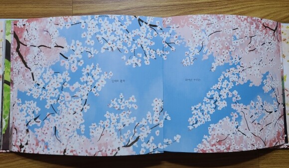 책안에 또 한번더 펼침 페이지가 있는 멋진 구성이예요! 누구나 벚꽃과 관련된 기억하나쯤은 가지고 있을텐데요. 저도 벚꽃과 관련된 옛기억을 떠올리며 행복감을 느꼈어요.