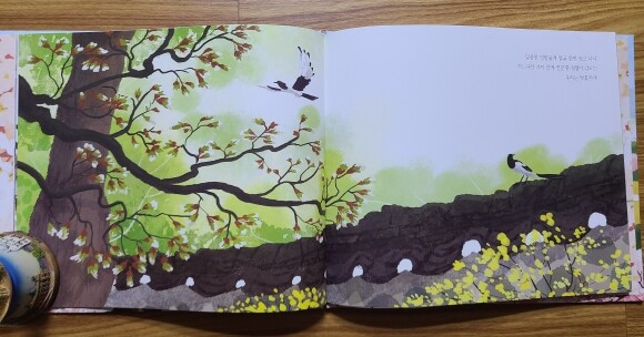 언제 봄이 오나 싶지만 언제나 계절은 약속을 지키죠. 봄비를 맞으며 어느새 톡톡 터지기 시작하는 꽃망울들 ! 자연의 색감이 정말 아름답게 담긴 그림책이었어요.