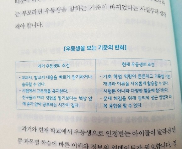 우등생의 기준도 변화하고 있음을 여러가지 예를 들어 알려주고 있어요