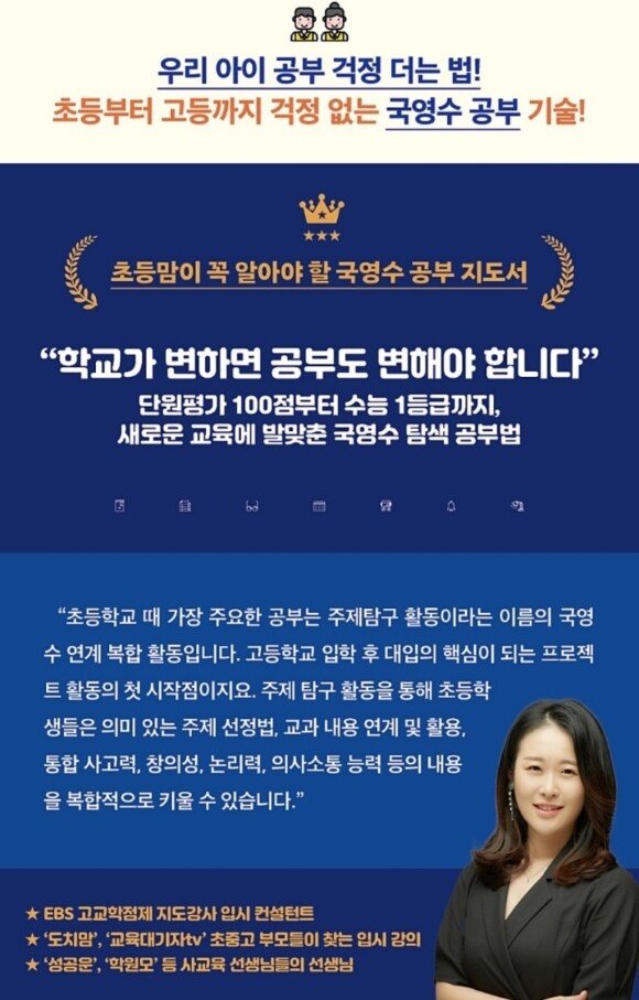 이젠 입시라는 단어가 가깝게 느껴지는 초등학생,중학생 학부모가 되었는데 입시 전문가가 알려 주는 국.영.수 계열 공부지도서 초등 국영수 공부법이 출간되었다고 해서 관심있는 부분인 만큼 반갑게 만나보았어요.
