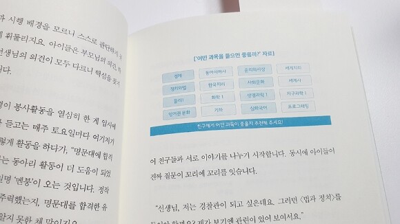 단순히 초등 국영수 공부하는 방법을 알려주는 게 아니라 대학 입시 제도를 염두해 두고 그 입시 정책에 맞게 초등교육때부터 어떻게 공부해야 하는지, 단순한 교과 과목보다 더 중요한 것은 무엇인지, 내신과 수능대비를 위한 공부법을 알려주고 있어서 정말 도움이 많이 된 책이에요~