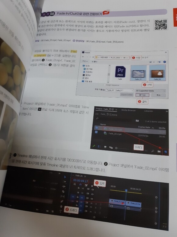 프리미어는 책만 봐서 학습하기 어렵고 실제로 프로그램을 활용하고 실습을 하면서 꾸준히 연습해야 제대로 학습을 했다고 하지 않을까 싶다. 이 도서는 이러한 학습의 길잡이로써 충분하도록 기본적인 도서 내용도 좋았고 첨부된 이미지가 많아서 학습에 유용했으며 중간 중간에 QR코드로 동영상 강의까지 제공되니 단계별로 학습하는데 큰 도움이 되었던 것 같다.