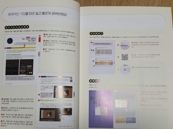 요즘은 웹사이트 접속이나 결제시 활용하여 QR코드가 널리 사용되고 있는데 이 도서에서는 각 설명하는 항목에 따라 QR코드를 통해 관련 유튜브 영상 등으로 연결되어 참고할 수 있는 자세한 내용들이 제공되므로 도서를 보면서 동영상 강의까지 함께 좀 더 이해하기 쉽게 학습할 수 있었다.