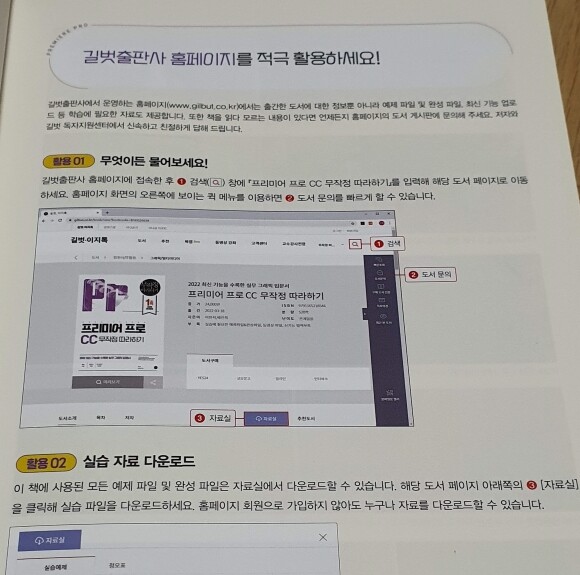 무작정 따라하기 도서 시리즈는 길벗출판사의 도서인데 책 앞부분에서 출판사 홈페이지를 활용법을 안내한다. 특히 IT 도서의 경우 실습이 중요한데 실습 자료 다운로드 페이지를 통해 책 내용에서 안내되는 내용의 실습 예제 파일들을 다운로드 받을 수 있다.