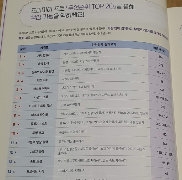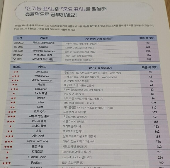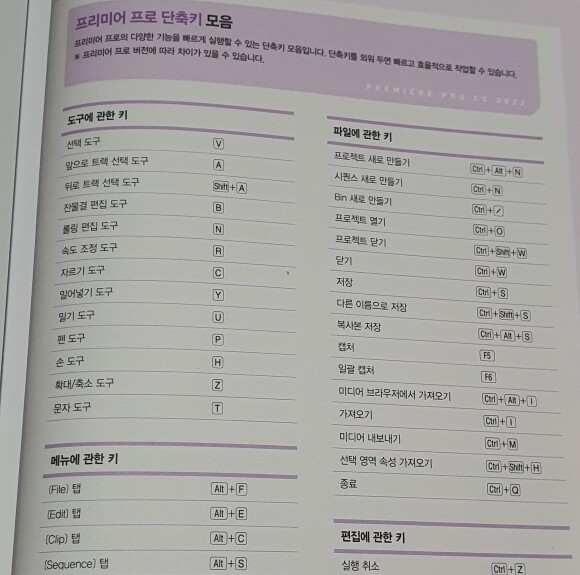 책의 마지막 부분에서는 단축키를 모아 설명하는 항목이라던가 추가로 가볍게 가지고 다니면서 읽어볼 수 있는 별책부록 '프리미어 프로 CC 무작정 따라하기' 프리미어 프로 CC 새로운 기능이라는 작은 책이 붙어 있었다. 일단 기본기를 다잡은 후에 새로운 기능들에 대해서도 깊게 추가 학습을 통해서 막강한 프리미어 프로의 기능들을 활용해봐야 할 것 같다.