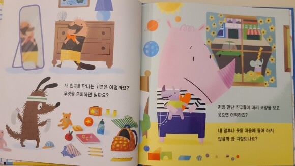 태어나서 처음 갖는 부모와의 헤어짐에 슬프고 긴장되고 두렵고 무서웠을 우리 아이들..ㅜㅜ 금방 잘 적응할 수 있을 거라고 격려해 주는 내용에 마음이 참 따뜻해져요.