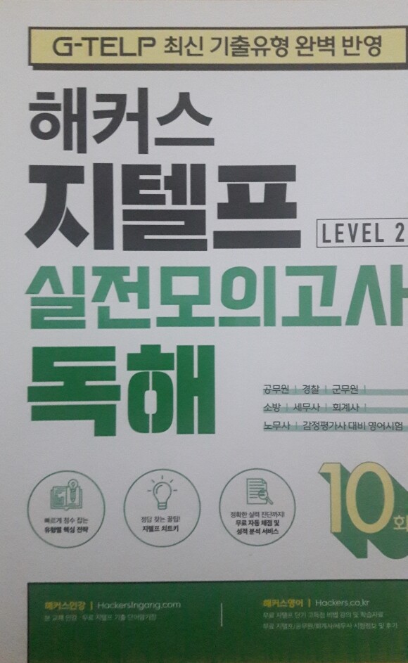 지텔프 시험에 대비하기위해 독해책을 고르는 와중에 해커스 지텔프 실전모의고사 책이 가장 좋다고하여 구매를했습니다 독해 문제질도 좋았고 해석도 잘되어있으며 독해풀때 실전 팁도 있어서 저에게 도움이 많이 되었습니다 시중에 파는 책들도 많은데 요책이 가장 실전 대비하는 적합하지 않나 생각이듭니다 독해 문제 옆에 해석으로 끊어읽기도있고 잘 나오는 독해 단어들도 정리가 되어있어서 도움이 많이 되었습니다 |