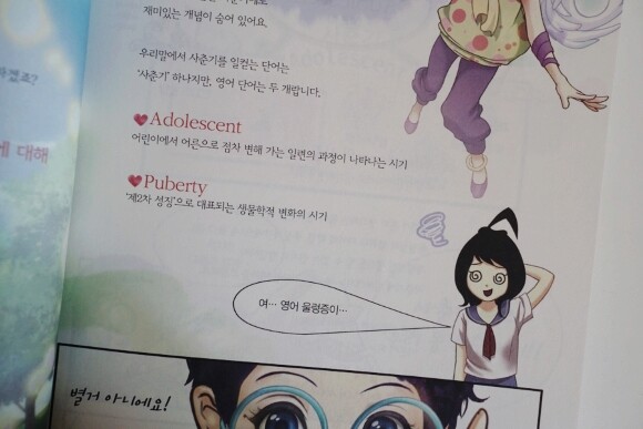 아이가 자라면서 점점 사춘기에 대해서 걱정이 되고있는것은 사실이다. 그런 아이에게 건강한 사춘기를 보낼 수 있도록 아이에게 도움이 되는 정보를 얻을 수 있게 도와주고싶다. 아이도 다양한 사춘기에 대한 책을 많이 읽고 있었다. 아이가 관심있는것에 대해서 함께 도움을 주고싶은 생각이다.