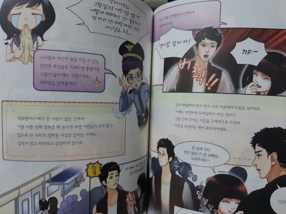 학년이 올라가면서 점점 혼자 다니는경우도 많고, 더 많은 일을 겪을텐데 그 중에 성추행에 대해서도 알려준다. 만약 지하철이나 버스에서 기분 나쁜 신체접촉을 겪었을 경우 어떻게 하면 좋을까?? 이 책의 내용이 다 맞는건 아니지만 기본적으로 알아둬야 만약 내가 진짜 이런일이 생긴다면 이렇게 도움을 청할 수 있다는걸 알아두는것이 좋겠다.