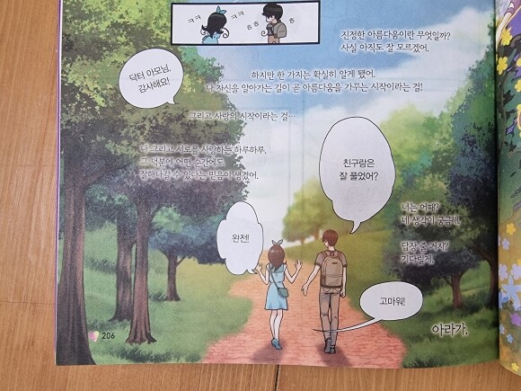 웹툰이라 쉽게 읽힌다고 내용까지 쉬운것들은 아니예요!! 우리 아이들이 많이 궁금해하는 사춘기와 생리, 이성친구, 임신까지 궁금하지만 어른에게 먼저 시원하게 물어볼수도 없고 또 물어본다고 해도 나중에 다 알게된다며 말해주지 않던 내용들이 아이들의 눈높이에 맞춰 주인공 아라와 개성만점 친구들의 흥미로운 에피소드로 풀어지네요 여기서도 씩씩한 우리 주인공이 난관에 부딪히지만 친구들과 잘 헤쳐나가는 모습이 기특하더라구요!!