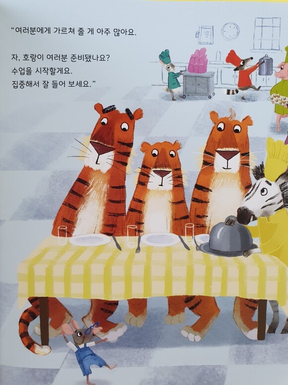 예의없는 호랑이들이 모든것을 엉망으로 만드는 장면을 아이는 좋아했어요. 엉망이 된 상황을 바라보며 어떻게 해야 할 까도 함께 고민해 봤어요.