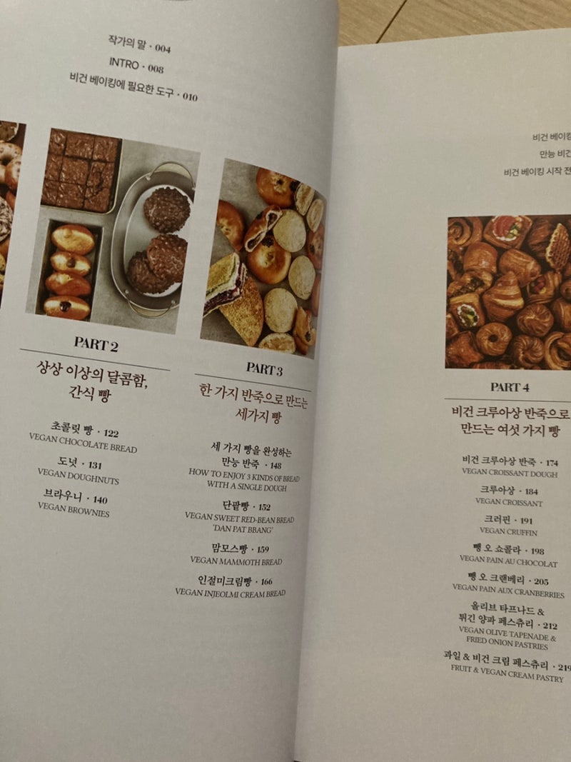 Part1. 매일 먹어도 부담없는 데일리빵 Part2. 상상 이상의 달콤함, 간식빵 Part3. 한가지 반죽으로 만드는 세가지빵 Part4. 비건 크루아상 반죽으로 만드는 여섯가지빵 Part5. 주말 아침을 특별하게 비건 홈브런치