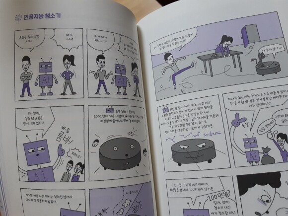 중간중간 만화형식으로 들어있어서 우리주변에서 많이 사용하는 로봇청소기에 대해서 알려주는 정보도 같이 있어서 관심있는 아이들은 재미있게 읽어볼 수 있겠다. 글로만 되어있는 책보다는 중간에 쉬는 정도로해서 만화형식을 보면 아이들이 더 재미있게 읽을 수 있겠다.