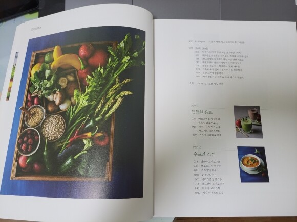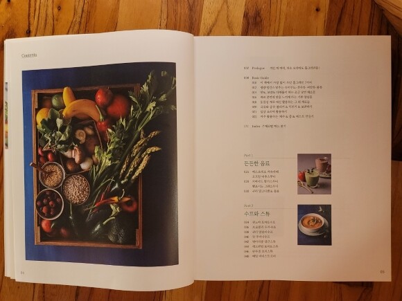 홀그레인 채식 시리즈 2탄으로 음료~수프와 스튜, 샐러드와 핑거푸드,밥,면, 빵 요리,그라탱과 일품 채소 요리, 남은 채소를 알뜰하게 활용할 수 있는 사이드 활용의 60여 채소 요리가 소개외었어요 홀그레인과 곡류를 불리고 익히는 법, 보관법.평상시 요리 활용하는 법, 채소 손질법 등 홀그레인과 채소 사용에 관한 세세한 내용을 베이직가이드에 담아 누구나 쉽게 채소 요리에 도전할 수 있어 좋았습니다