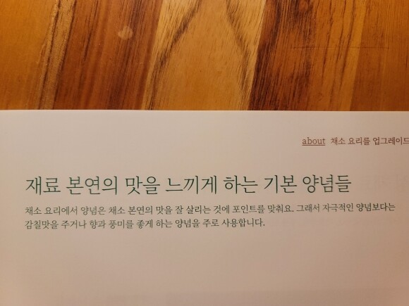 채식하면 동물성을 먹지 않고 샐러드만 먹어야 할것 같은 생각이 드는데, 이 책은 "채식의 목적을 단순히 동물성 식품 지양에 맞추지 않는다. 동물성 식품을 배제하는 것을 넘어 근본적으로 채소를 더 맛있게, 멋지게, 즐겁게 먹을 수 있는 경험을 제안한다." 라는 내용에 끌려 구입하게 되었어요~