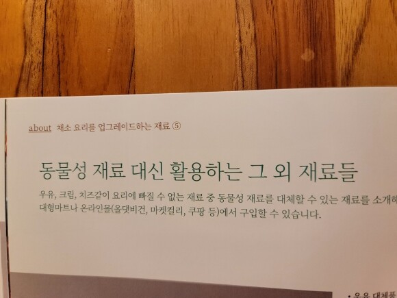 레시피를 보면 레시피에 적힌 재료만 사용해야 할것 같은데 대체 재료도 알려주고 있어서 더 좋았어요. 매일 채식을 먹는건 어렵겠지만 책 보면서 조금씩 채식을 늘려보겠습니다.