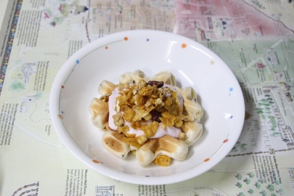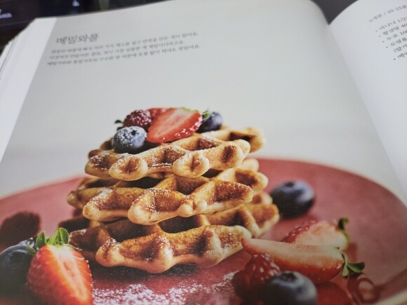 색이 허옇지만 메밀 와플을 만들어 비건리코타 치즈를 올려 먹었답니다.
