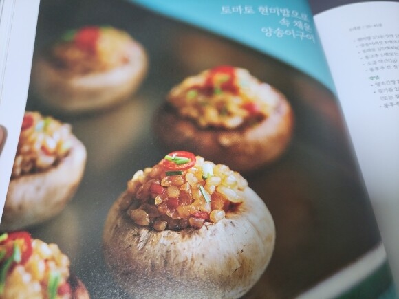 책표지도 예쁘지만 한장한장 넘겨보면서 채소요리 메뉴들이 너무 예뻐서 감동했습니다! 아이들이 즐기지않는 채소요리를 이렇게 맛나게 먹을수있다면 건강도 챙기고 1석2조일것같은데요 제일먼저 눈에 들어온 양송이구이밥 예쁜데 맛도 좋네용! 건강과 맛을 챙기려면 도전해보세요 양송이와 토마토 사이에 흐르는 찐한 육즙이 감동입니다! 아들들과 서로 먹겠다고 눈치싸움할정도로요~ 더운 여름이 시작되었는데 홀그레인책에 있는 메뉴들 하나하나 다 만들어보고 건강한 여름 보내려합니다 건강식은 먹고싶은데 맛없는건 못참으시는분들께 추천합니다