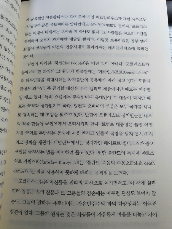 공포를 이용하는 포퓰리즘이 제시하는 유토피아는 아무 곳에도 이르지 못한다며,