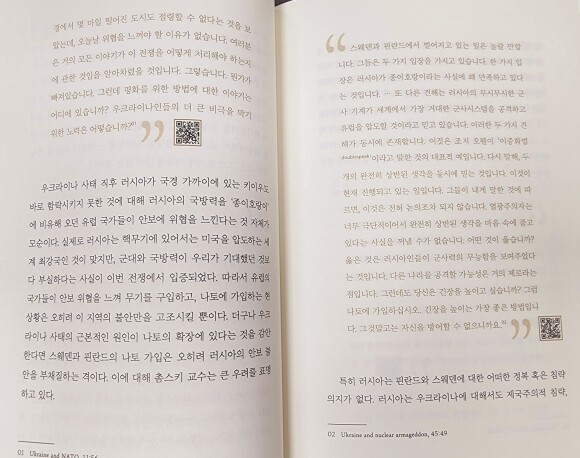 책 절반 정도가 부록이고, 본문에서도 참고문헌이 많이 등장하기 때문에 막상 글의 양은 별로 되지 않아 빠른 시간 안에 읽을 수 있다. 촘스키편 뿐만 아니라 그 외 저명한 석학인 차스 프리먼이나 헨리 키신저, 존 미어샤이머가 말하는 우크라이나 사태를 담은 책도 있다.