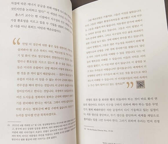 최근 러시아 - 우크라이나 전쟁에 대한 노암 촘스키의 주장에 대해 많은 비판이 있는 것 역시 사실입니다. 하지만 이 책에 소개된 노암 촘스키가 주장하는 바에 대한 앞 뒤 맥락을 살펴보면 이미 백수(白壽)의 나이를 바라보는 노학자의 인사이트와 영명이 살아있다는 것을 느낍니다.