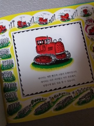 흠, 트랙터를 의인화한 책이라...... 아이에게 느낌을 물어봐도 당최 뭐, 큰 기대를 할 대답의 수준도 아니고, 읽어줘도 별 반응이 없어서 트랙터에 대해서 열심히 설명을 해줬다. 여자아이임에도 자동차 장난감은 무척이나 좋아하더니 트랙터 이런건 또 그다지인가보다. 설명을 해줘도 잘 모른다. 하긴, 니가 벌써 안다면 ...... 내가 가르칠게 없는걸..ㅋ